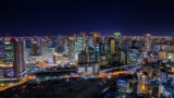 66プラザから見上げる。かっこいい。中央のライトアップは上から下に流れるように動く。1年中動的なライトアップを行っているのは六本木ヒルズ森タワーと同じ森タワーである「虎ノ門ヒルズ森タワー」ぐらいじゃなかろうか。森ビルの余裕を感じる。