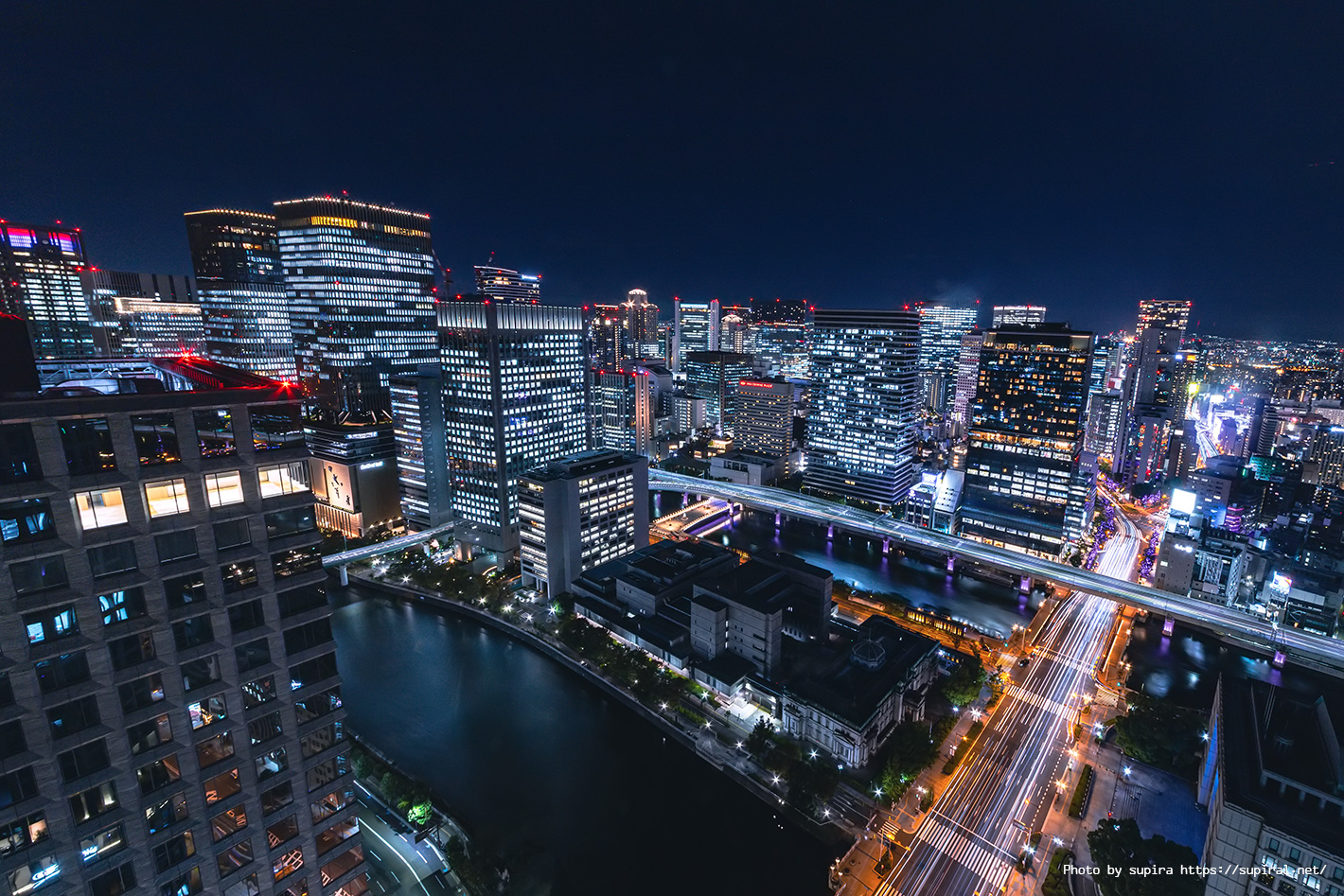 大阪の歴史ある建築物の威厳のある姿、最先端の高層ビル群、「水都の名は大阪のもんです」と言わんばかりな中之島の水景、と要素盛りだくさんな夜景が楽しめる夜景スポットです。