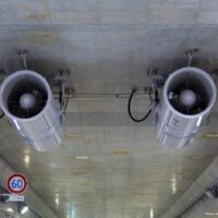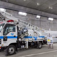 ソフマップのようなパネルを横目にトンネルを歩けば、緊急車両が。