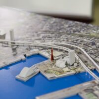 人だかりができていて、何や〜とのぞいたら、なんと!湾岸線の延伸区間の模型!