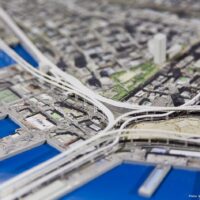 道路だけでなく、シンボリックな高層ビルも立体化している力作。普段は阪神高速の会社に設置しているのでしょうか。