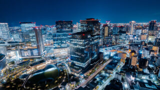 夜景 着工から5年、グラングリーン大阪南街区の様子